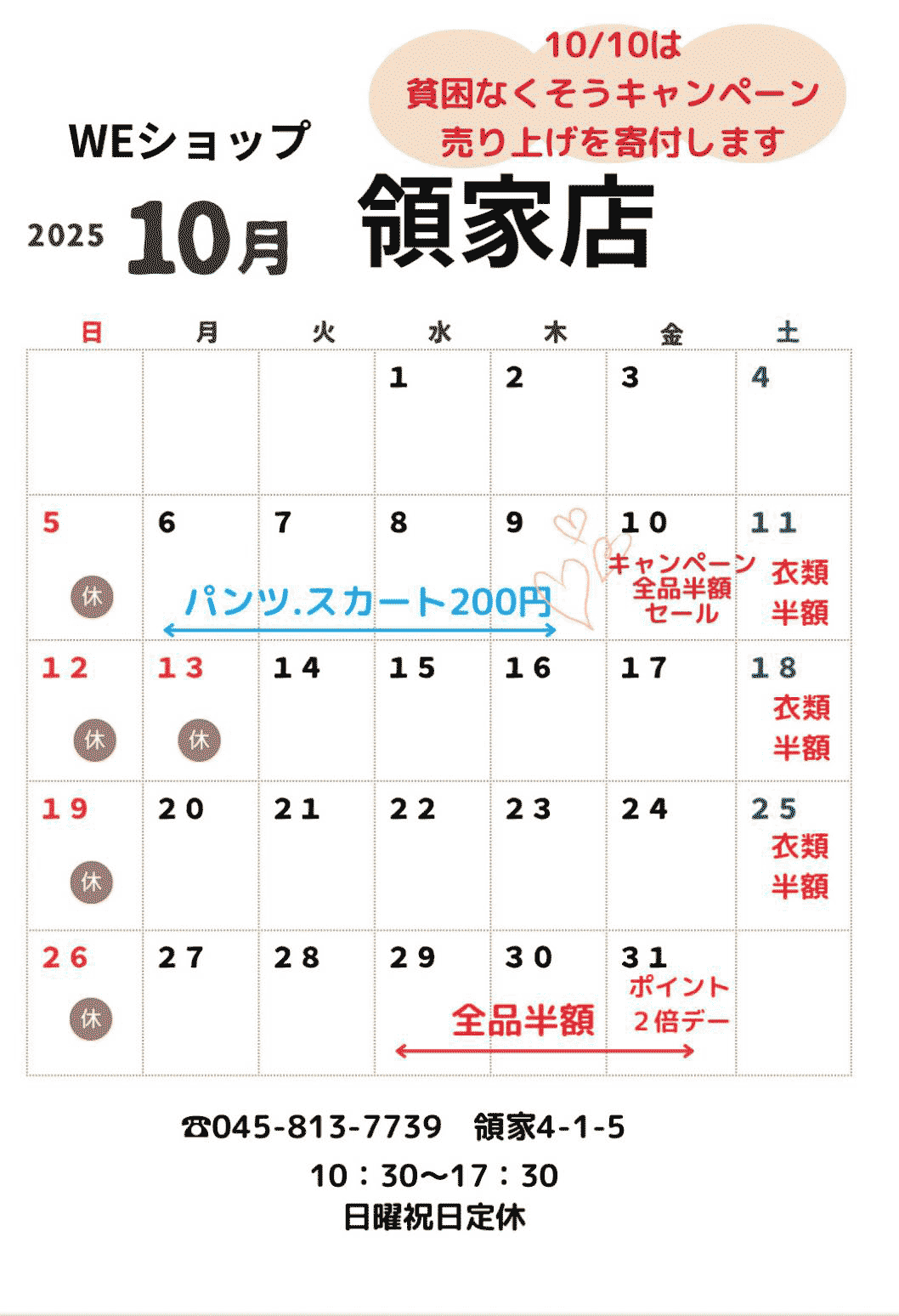 10/10は「貧困なくそうキャンペーン」の半額セールです。