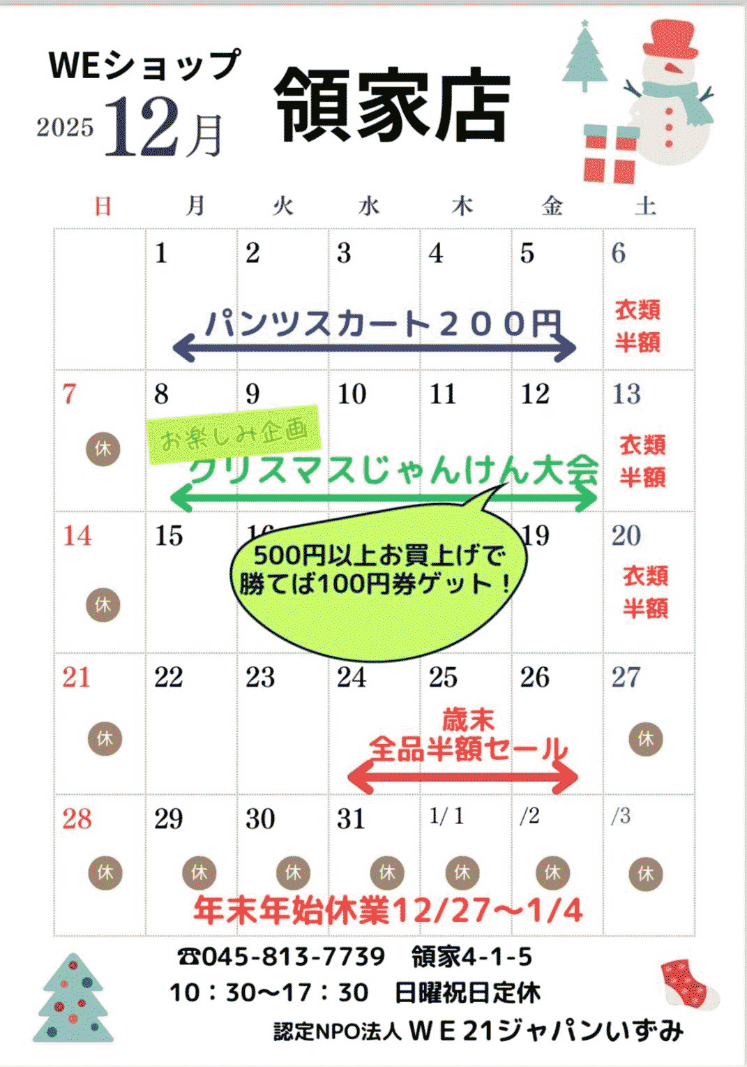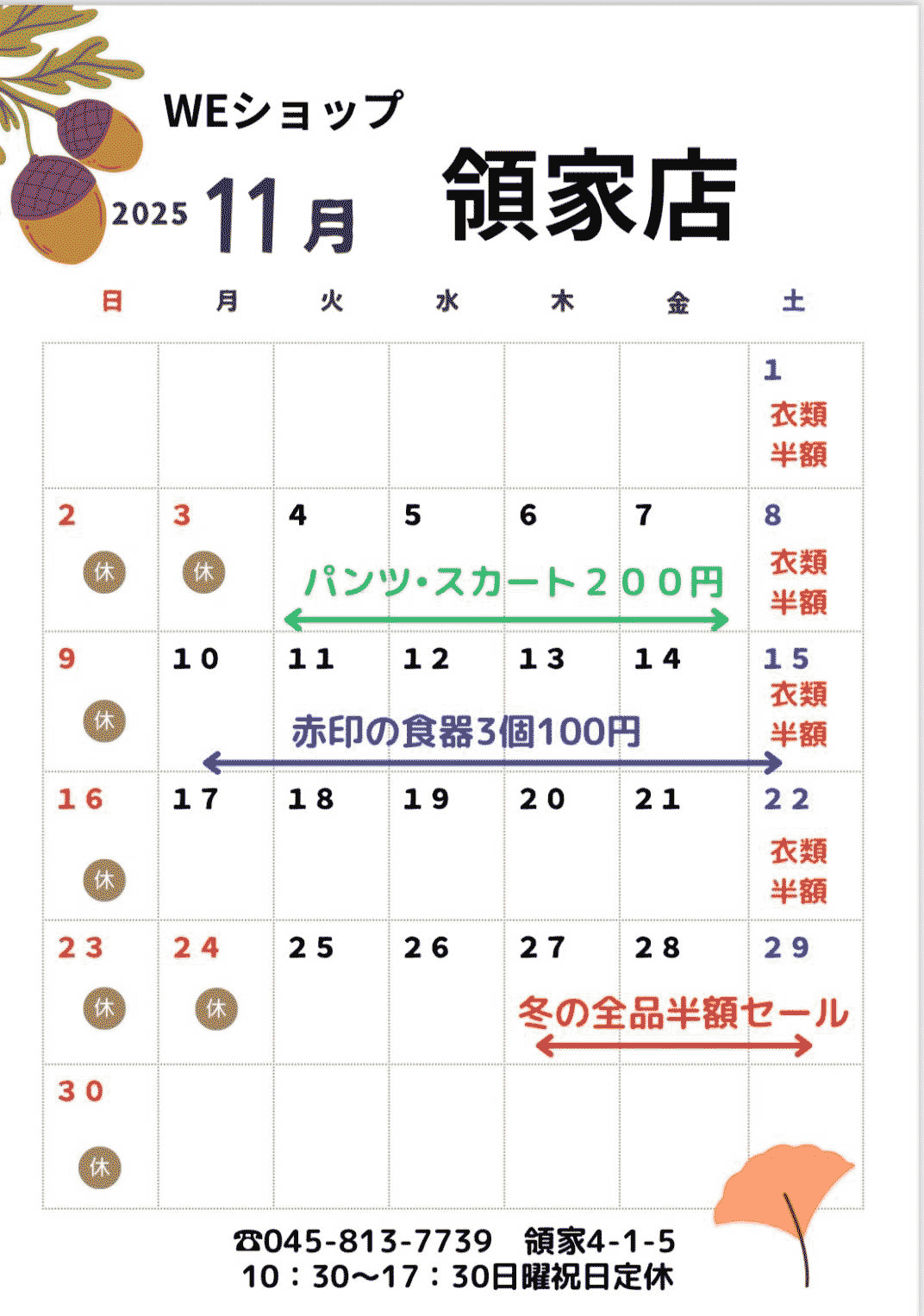 なお、11月30日は店内清掃のため休業させていただきますので、ご了承のほど宜しくお願いします。
